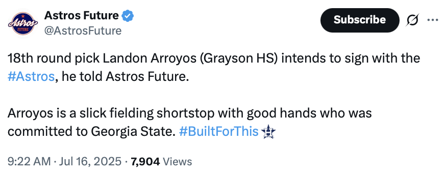 Just read an interesting tidbit about Jase Mitchell, which I think came from the podcast (haven’t had a chance to listen to it yet). Astros were super impressed with his makeup. During the team’s initial meeting with him, a scout briefly mentioned the need to learn Spanish in their minor league system. A couple of weeks later, during the second meeting, they discovered Mitchell was using Duolingo to learn Spanish.