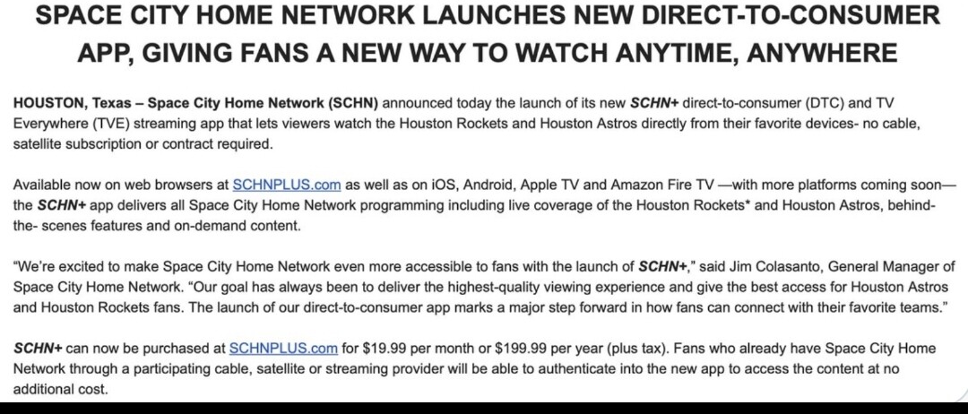 SCHN+ has been announced, if you have cable just for Astros games, you can now cancel. For me, as soon as football ends, Fubo can fucking get lost