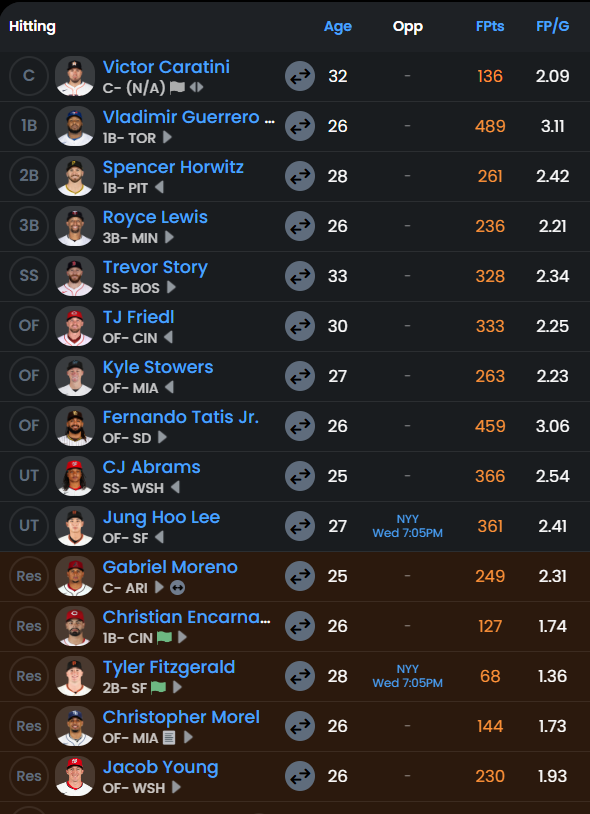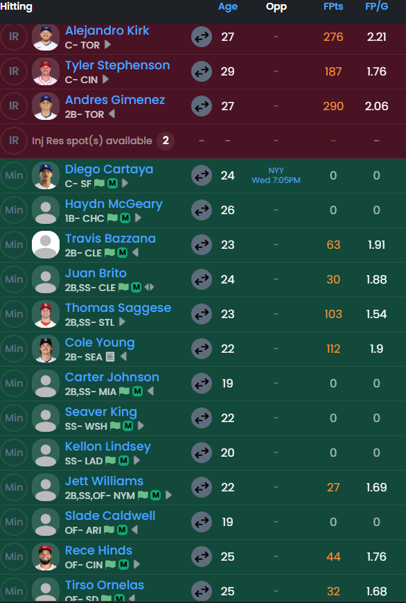 Rusty Kuntz Fan Club, a fantasy baseball dynasty league that I run needs one more owner. We are going into year 3. League fees are $40 for the team and then $9.28 for the premium on Fantrax. Below is the roster for available team. If anybody is interested in taking over I would be happy to have you. We have a discord for league business that you would need to join as well.